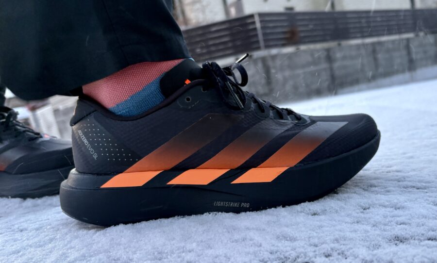アディゼロシリーズ好きとしては、シリーズ内でも最も評判の高いEVO SLは買わずにはいられない。むしろ買うの遅すぎるだろ。というツッコミが聞こえてきそうだけど、今年に入りようやく手に入れることができた。