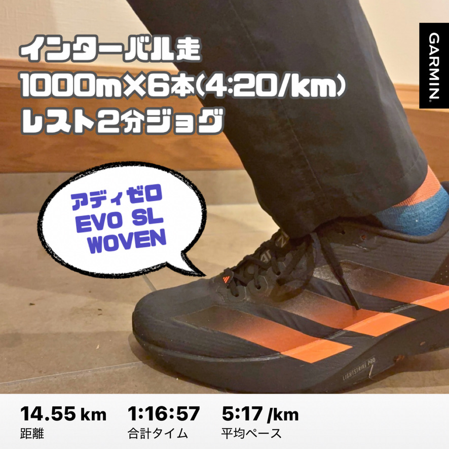 自分もEVO SL WOVENに関しては、フルマラソンなら十分使えるとは思ったけど、インターバルはしんどいのかなと考えていた。